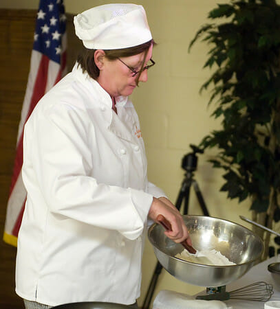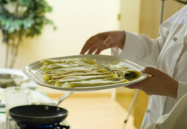 s those of you who read yesterday’s post on Creme Brulee already know, I recently got to attend and photograph my third “Meet the Chef” event at our local library. Not only did the wonderful Chef Rosemary Smith teach us how to make creme brulee, she also made us not one but TWO kinds of crepes…the spinach one you see above, and this delectable looking chocolate banana number.