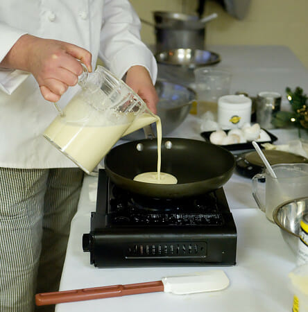 Anyway. After she finished up the creme brulee, we were on to the crepes. Crepes are one of those intimidating sounding things that seem like they should be handled by licensed professionals, but Rosemary promised us it would be fun, and after the creme brulee we were true believers.