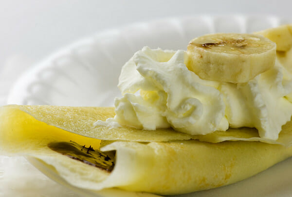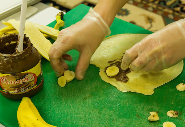 The banana crepes were spread with chocolate (Nutella would be ideal for this) and sprinkled with bananas. Getting HUNGRY???