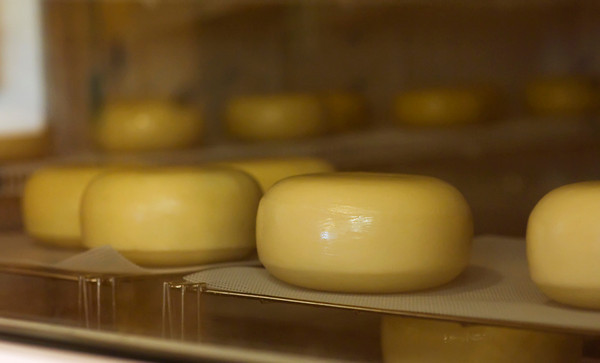 Back in the big building, we took a look at the cheese-making rooms, including this little piece of heaven where the finished cheese is just sitting here waiting for me.