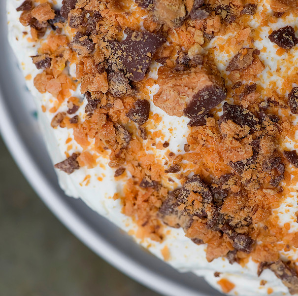 4. Crushed Butterfinger bars sprinkled liberally over the cream topping. And I do mean liberally.