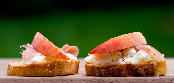 Peach Crostini with Prosciutto and Ricotta, adapted slightly from Bon Appetit