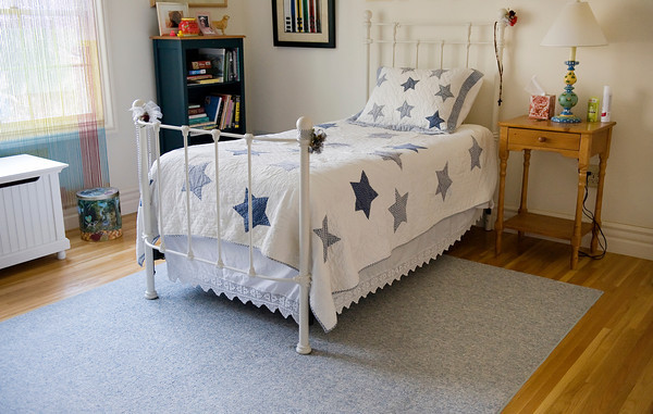 The word “featherbed” zapped me right over to one of the unused beds in our house. That bed belongs to the teenager, who has a new bed down at college these days. And thinking of that reminded me of my endless discussions with her about making her bed and picking up the giant piles of clothes on her floor, and so on. So now that she is in college, her bed looks the way I was always nagging her about. Like this.