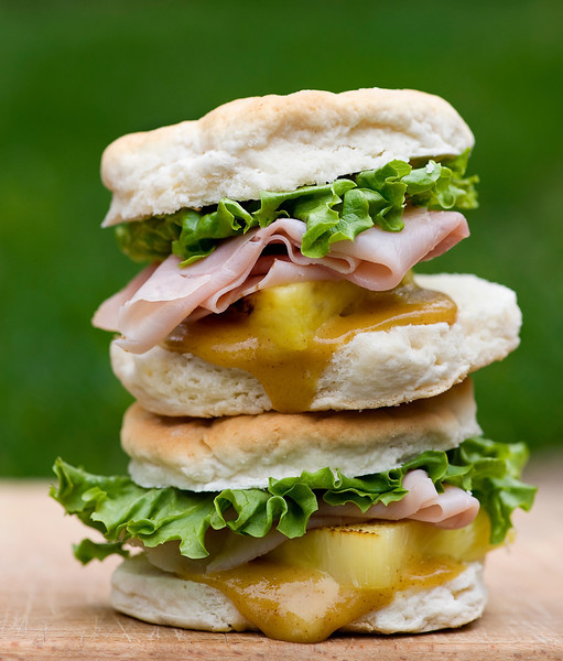 Start with some buttermilk biscuits. I’ve included my favorite recipe for them below, but feel free to buy them already made (make sure you warm them up right before you make the sliders, and if you use the ones in the tube, I won’t tell. I may or may not have done this myself). Next you need some pineapple…I like to grill my pineapple slices a teeny bit to give them just a little char, but plain fresh pineapple is just fine too. Some thin sliced ham, a little bit of curly lettuce, and you are in business. Bite into these babies, and you get a happy mouthful of salty ham meets sweet pineapple meets tangy mustard….all with some warm and wonderful buttermilk biscuit tossed in. Life doesn’t get much better, ham sandwich-wise.